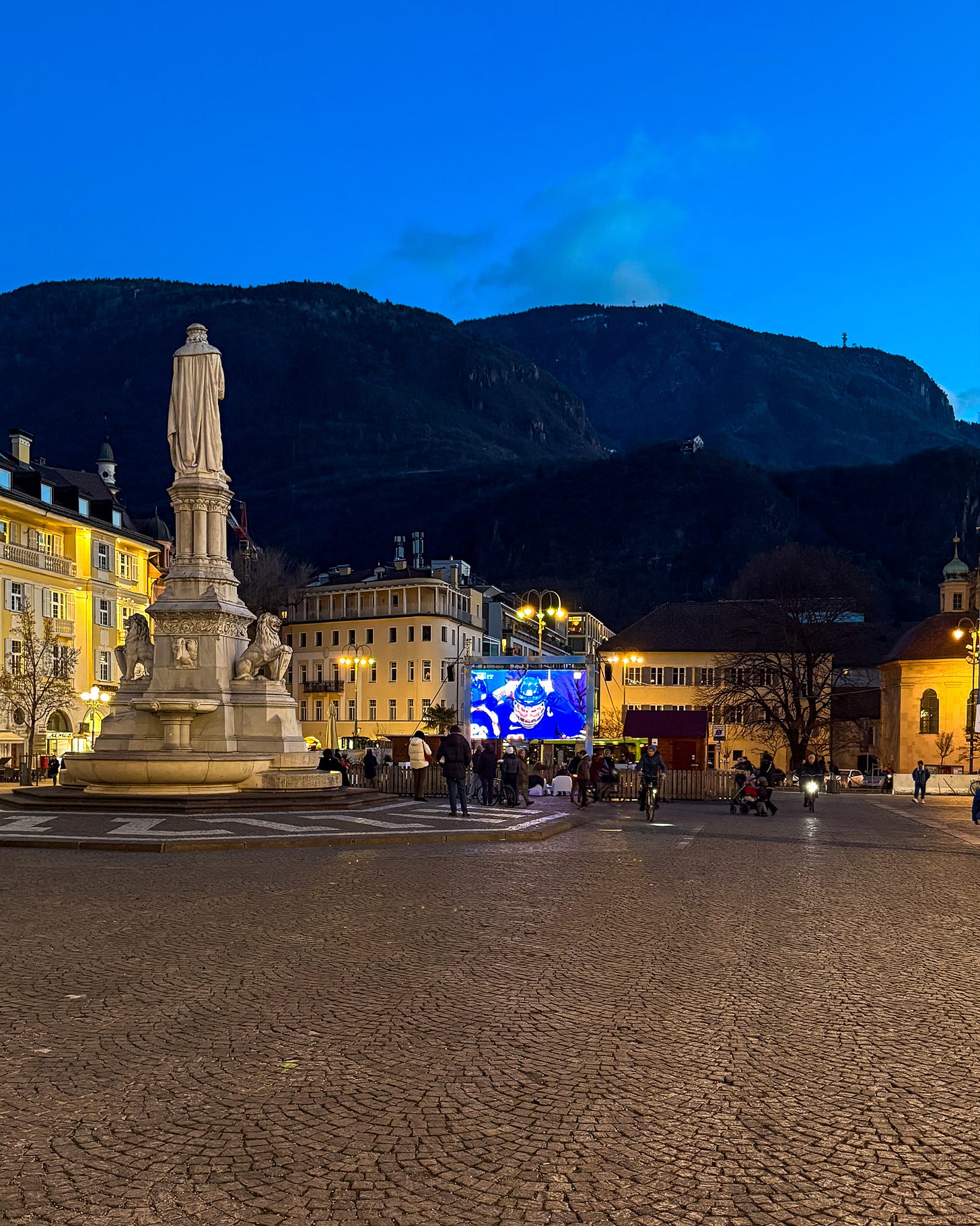 The Olympics being played in Walther Square in Bolzano, literally three steps outside of my hotel, Stadt Hotel Città. I wish I had more than a night in Bolzano, the city is quaint but beautiful in a way where I was shocked I was still in Italy. The architecture was uniquely Germanic and I overheard a few people at my hotel who were setting out to hike for the day. The dream.