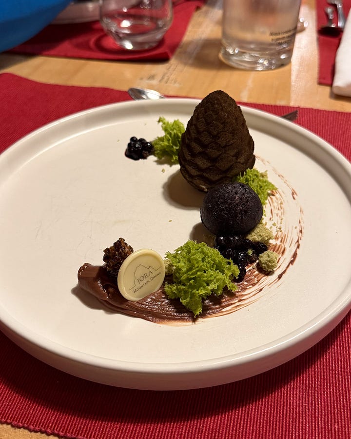 Jora Mountain Dining - this restaurant is up another snow-covered road, but wow it was a phenomenal experience. It was a coursed dinner, but not overly stuffy and incredibly true to South Tyrolean roots. Plus, it’s a full family operation, and we got to meet all three generations.