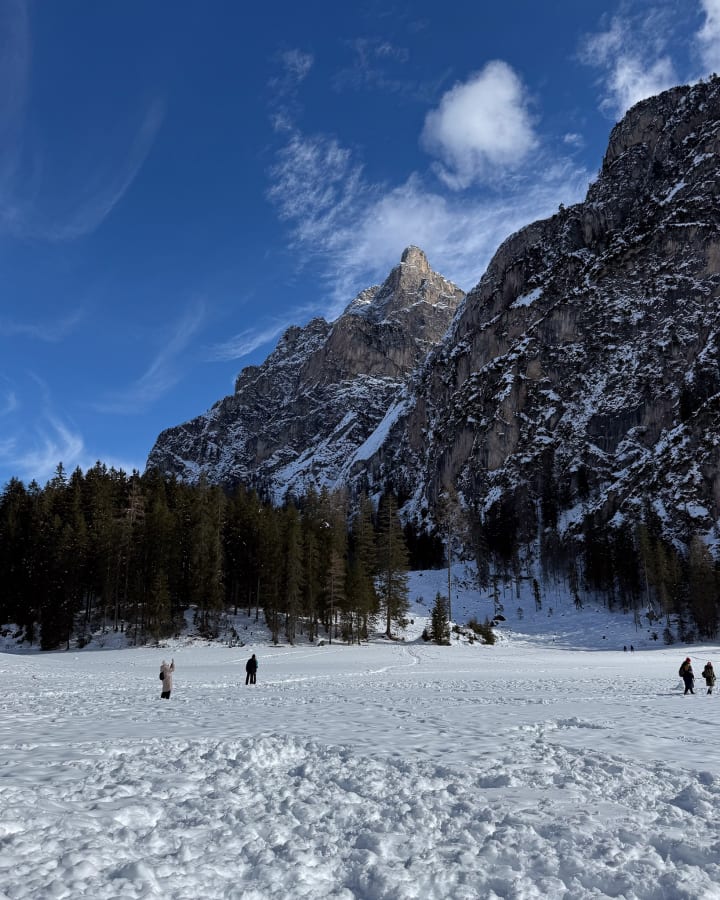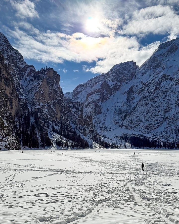 A frozen version of the Lago di Braies/Pragser Wildsee lake. But now all I want to do is go back in the summer to see what I walked all over.