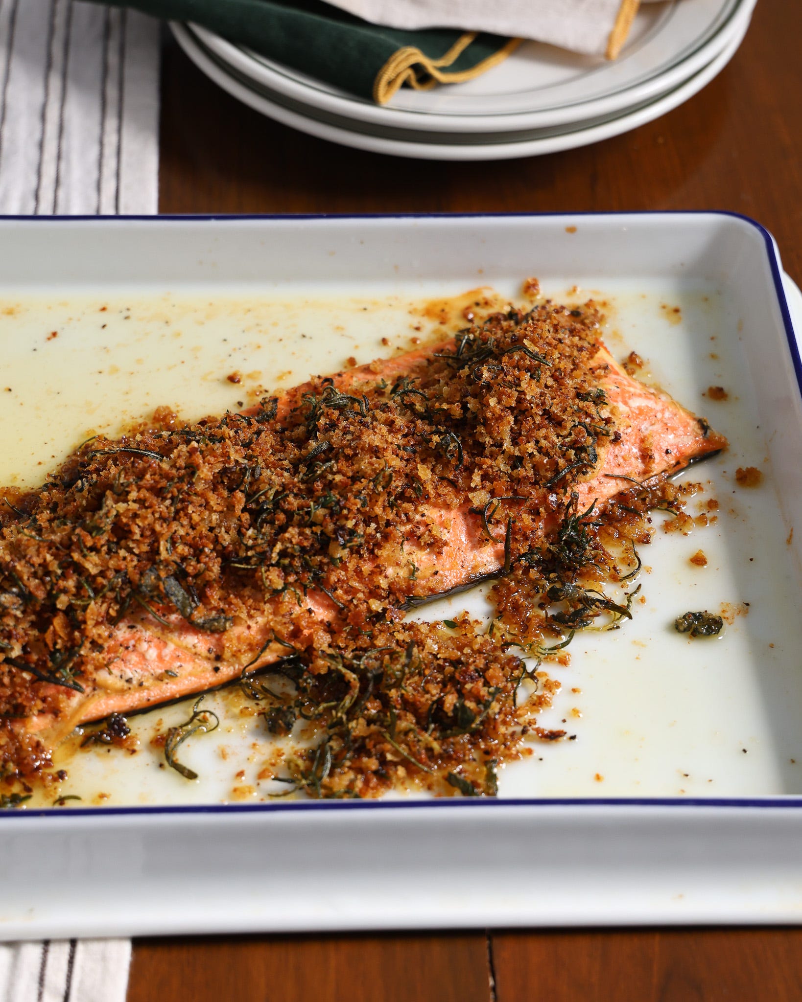 Think of this as golden, crusted, flavorful salmon that will fit perfectly on your Thanksgiving table. If you have any pescatarians in your life, this is the perfect protein to serve them on the holiday. Plus, you won’t have to wrestle for oven space because of its quick roast time.